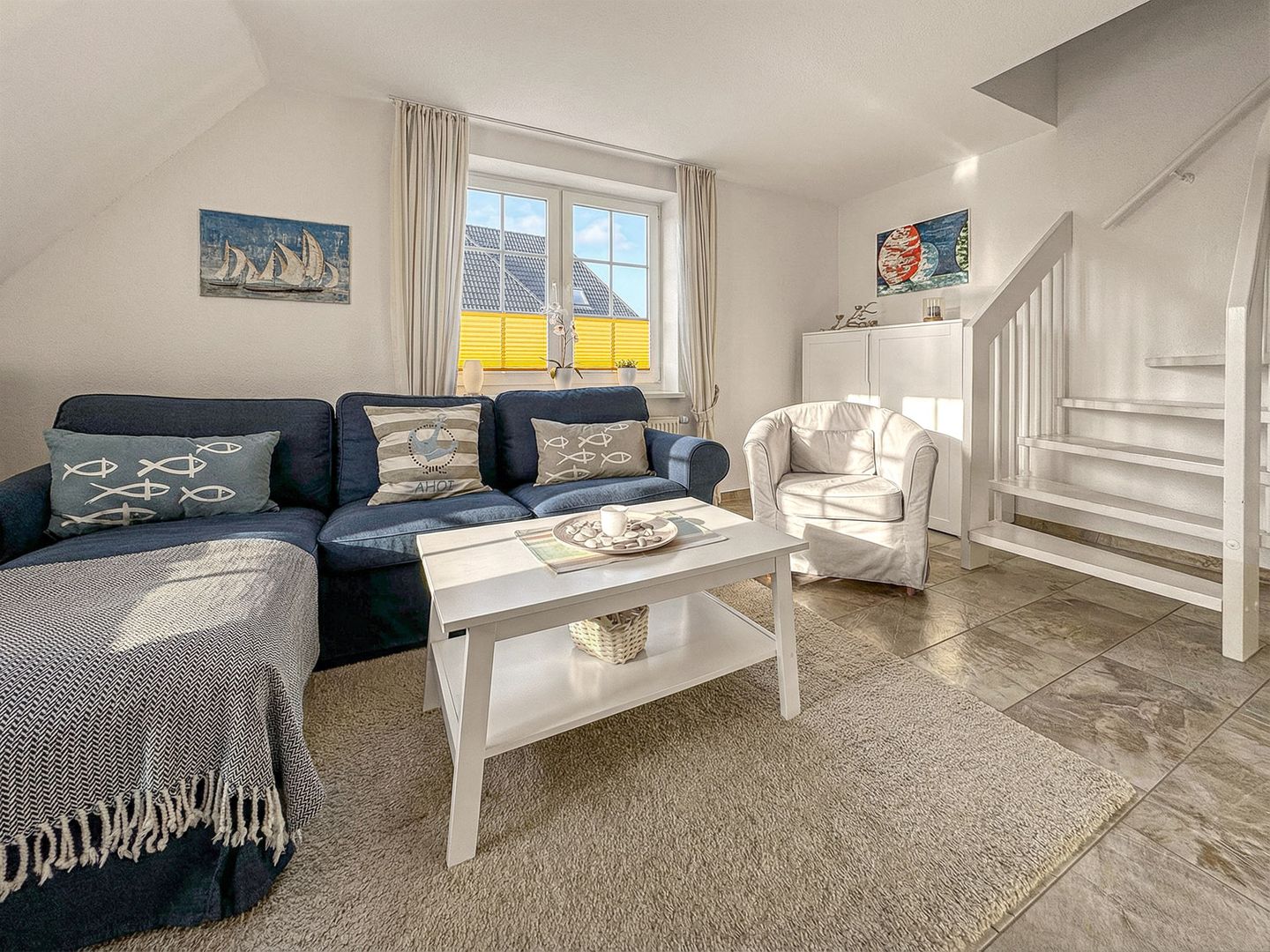 Einziges Manko für Familien mit kleinen Kindern ist vielleicht die Aufteilung der Wohnung: Vom Wohnbereich führt nur eine recht steile Treppe ins Dachgeschoss zu den Schlafzimmern; da hier aber beidseitig Handläufe montiert sind, war die Treppe trotzdem sehr gut und gefahrlos begehbar. Insgesamt kann ich die Wohnung also nur empfehlen und werde bestimmt auch selbst wieder Gast hier sein!